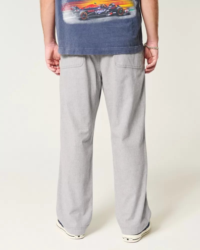 Linen-Blend Flex-Waist Baggy Pants