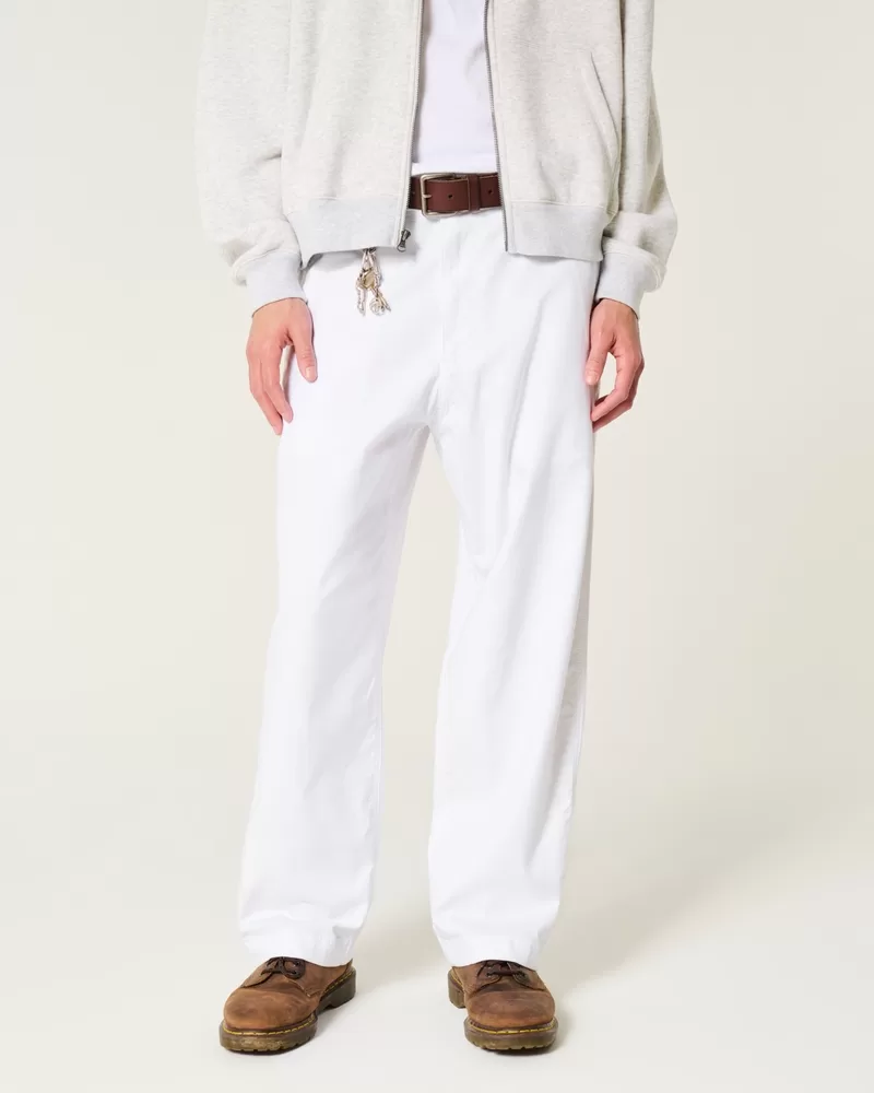 Comfortable pants in a soft linen blend, designed with a baggy leg and flex waist. Pockets.