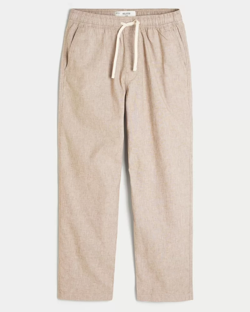 Comfortable pants in a soft linen blend, designed with a pull-on drawstring waist and loose leg. Pockets. Imported.
