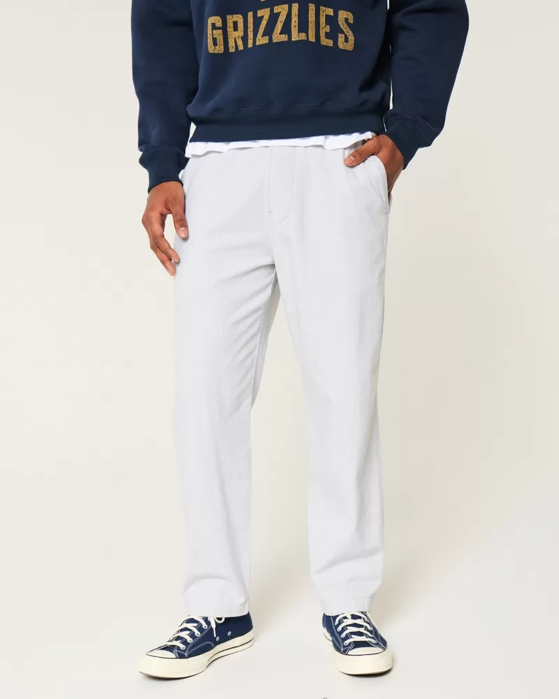 Comfortable pants in a soft linen blend, designed with a pull-on drawstring waist and loose leg. Pockets. Imported.