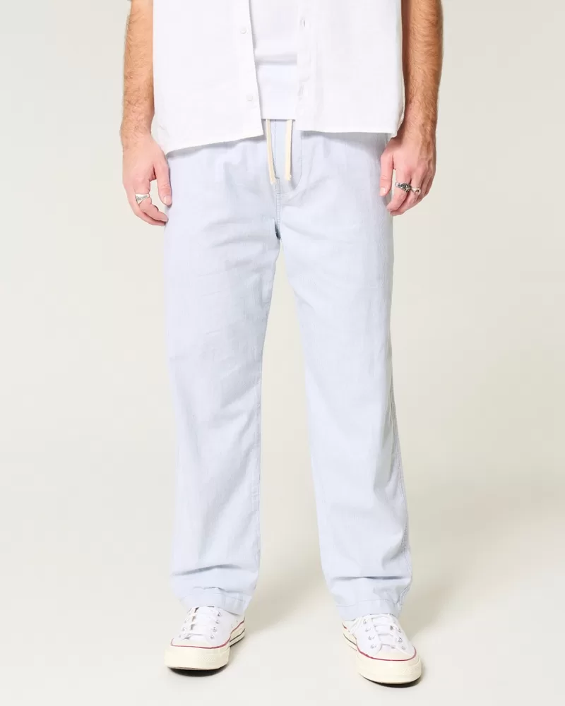 Comfortable pants in a soft linen blend, designed with a pull-on drawstring waist and loose leg. Pockets.