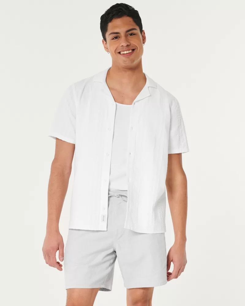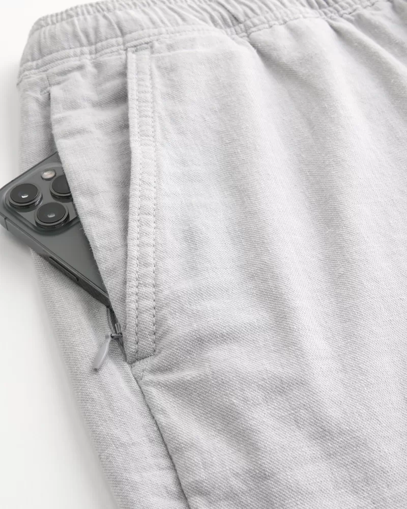 Ultra-comfortable pull-on shorts in a soft linen blend with Hollister Epic Flex stretch. Pockets, drawstring waist, right zipper pocket, 7″ inseam.