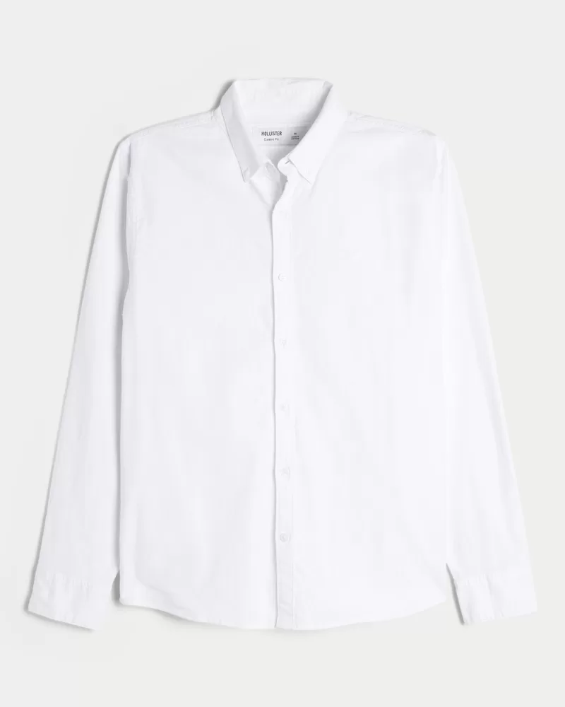 A classic long-sleeve shirt in Oxford fabric with stretch. Embroidered left chest logo icon, button-down collar, button closure. Classic Fit.