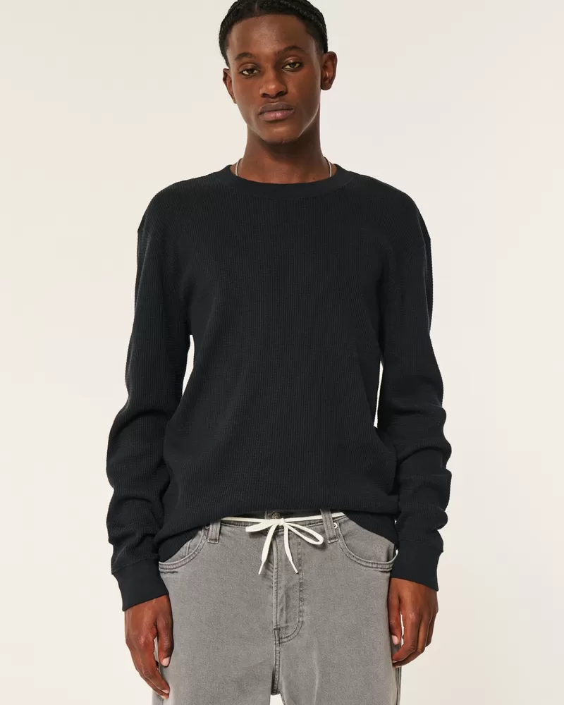 A classic long-sleeve t-shirt in super soft thermal waffle fabric. Crew neckline with button placket, long sleeves.