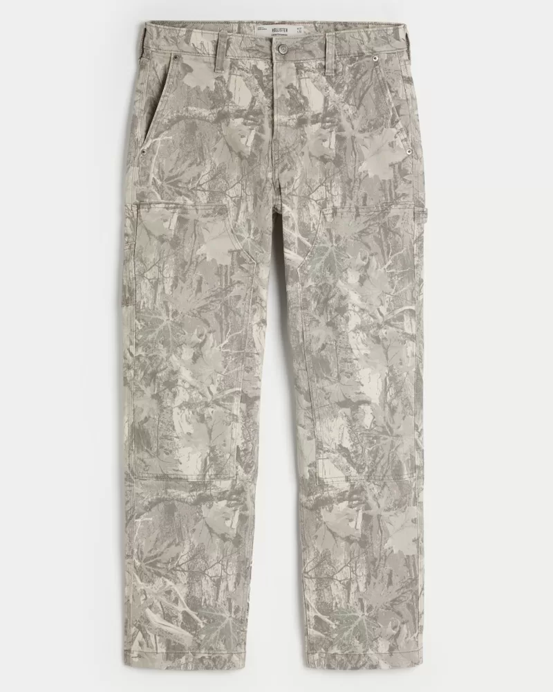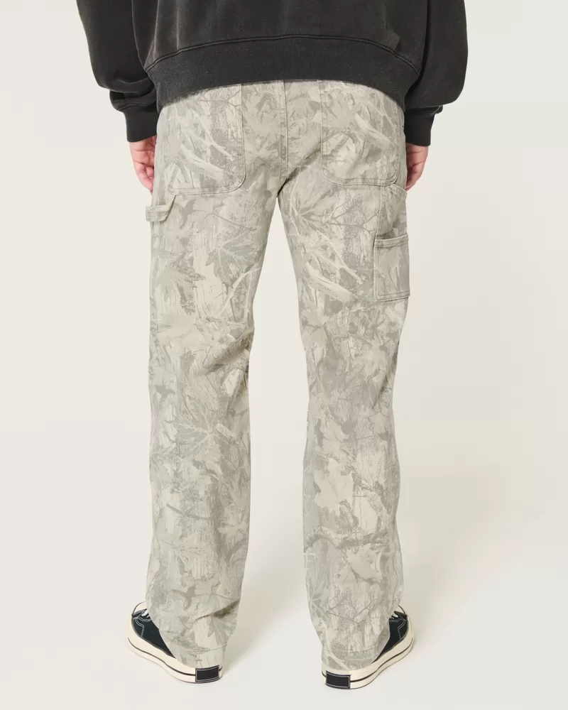 Ultra-comfortable carpenter-style jeans designed with a loose leg. Reinforced knee stitching, side hammer loop, all-over camo pattern, pockets. Imported.