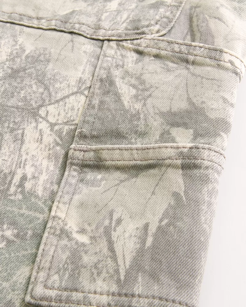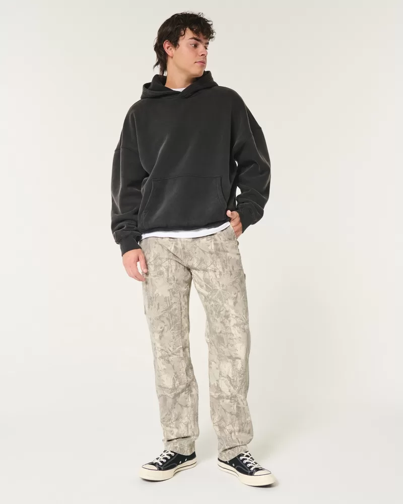 Ultra-comfortable carpenter-style jeans designed with a loose leg. Reinforced knee stitching, side hammer loop, all-over camo pattern, pockets.