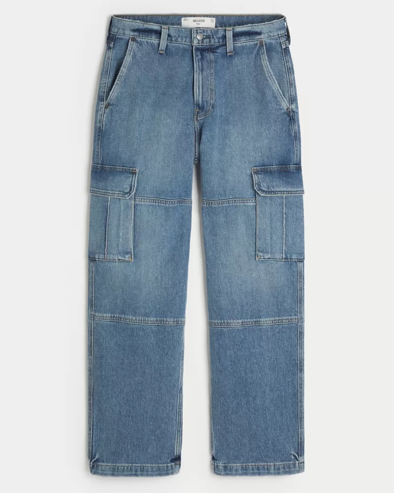 Medium Wash Baggy Cargo Jeans