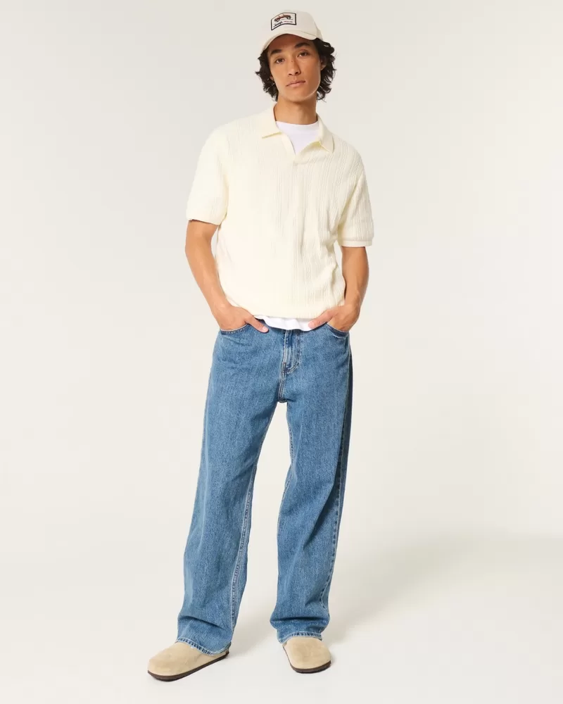 Ultra-comfortable jeans in Vintage Stretch denim, designed with a baggy leg. Medium wash. Imported.