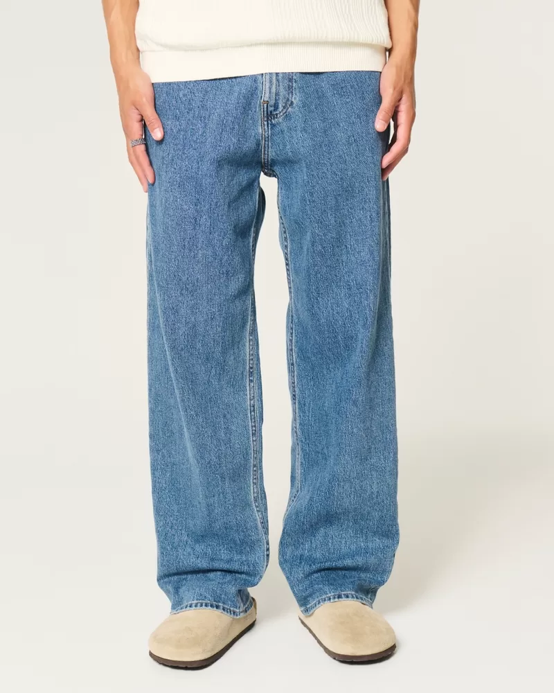 Ultra-comfortable jeans in Vintage Stretch denim, designed with a baggy leg. Medium wash.