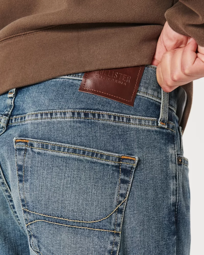 Designed with a slim fit through the hip and thigh with a 15.5” leg opening, these medium wash jeans feature Hollister Epic Flex denim. Fading and whiskering.