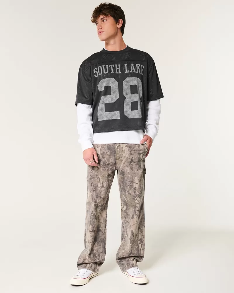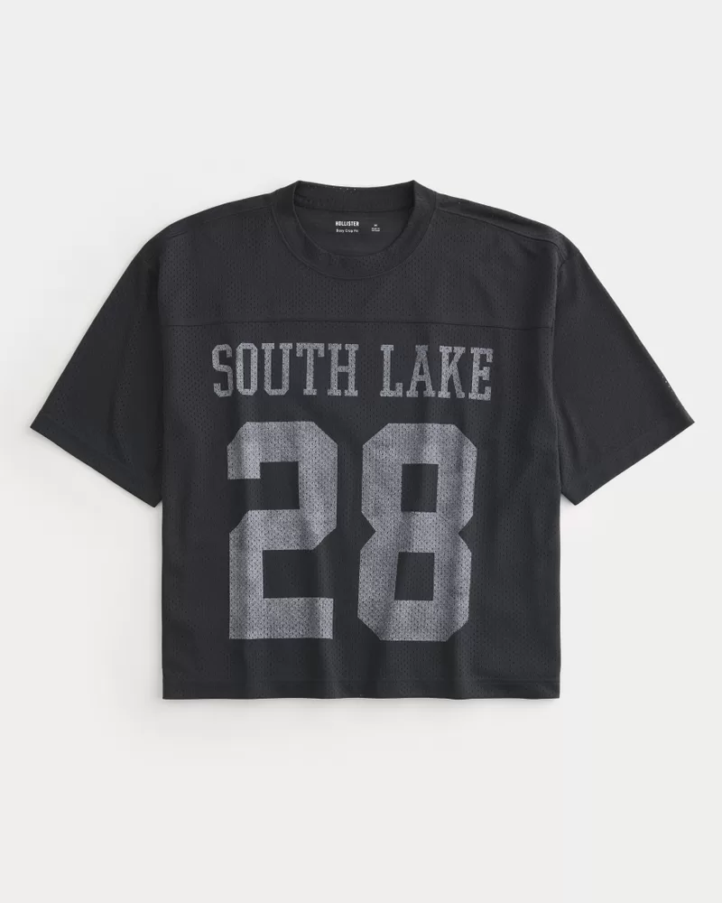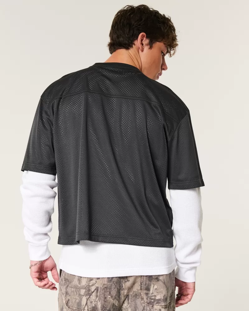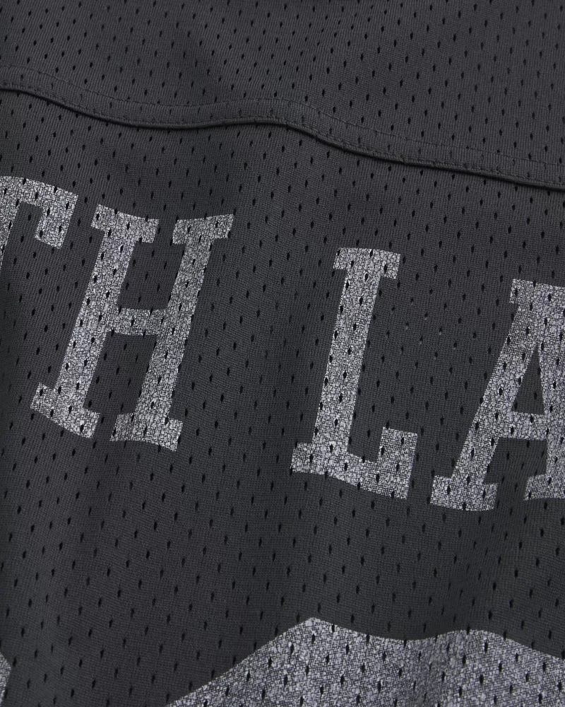 A super soft and ultra-comfortable football jersey in mesh fabric. V-neckline, varsity-style print graphics, short sleeves.