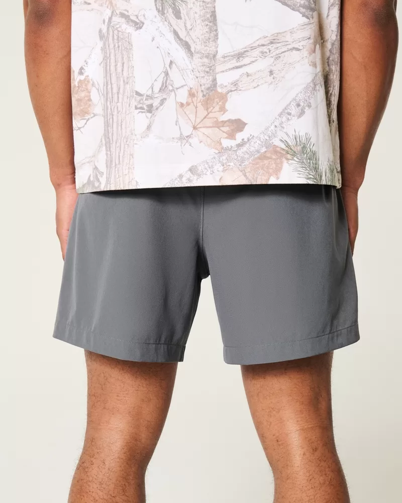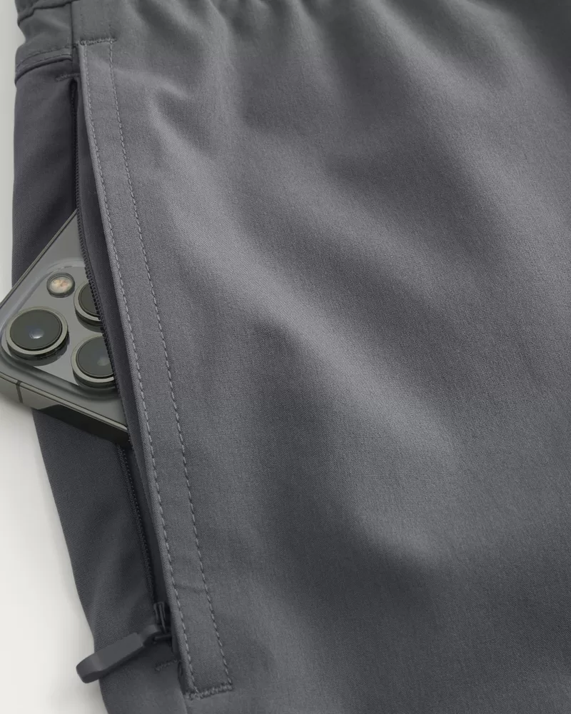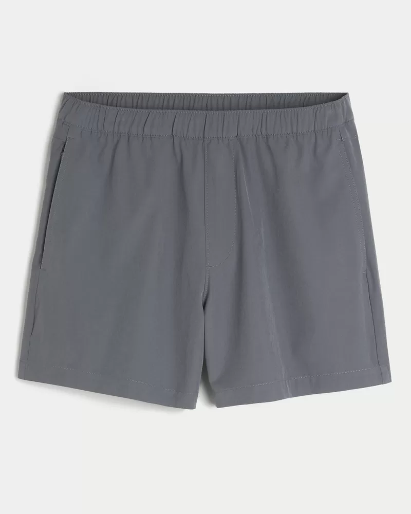 A sporty fabric makes these the most versatile shorts in your lineup for outdoor hangs, gaming and everything in between. Banded waist, right zipper pocket. Hits mid-thigh.