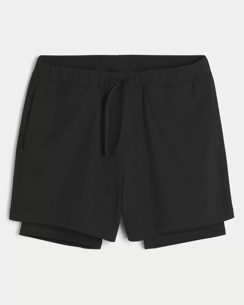 A sporty fabric makes these the most versatile shorts in your lineup for outdoor hangs, gaming and everything in between. Drawstring waist, right zipper pocket, hits mid-thigh. Inner shorts lining.