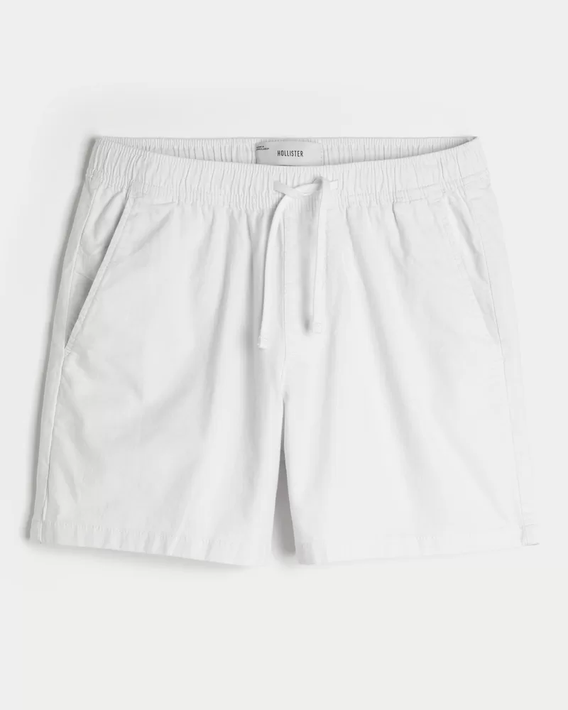 Comfortable shorts in a soft linen blend that hit mid-thigh, designed with a pull-on drawstring waist. Pockets.