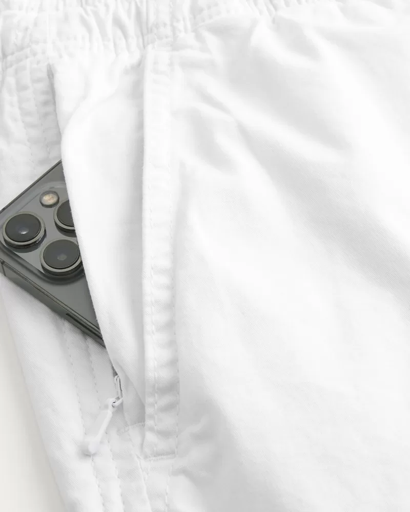 Comfortable twill shorts designed with a pull-on drawstring waist and mid-thigh length. Pockets, right zipper pocket.