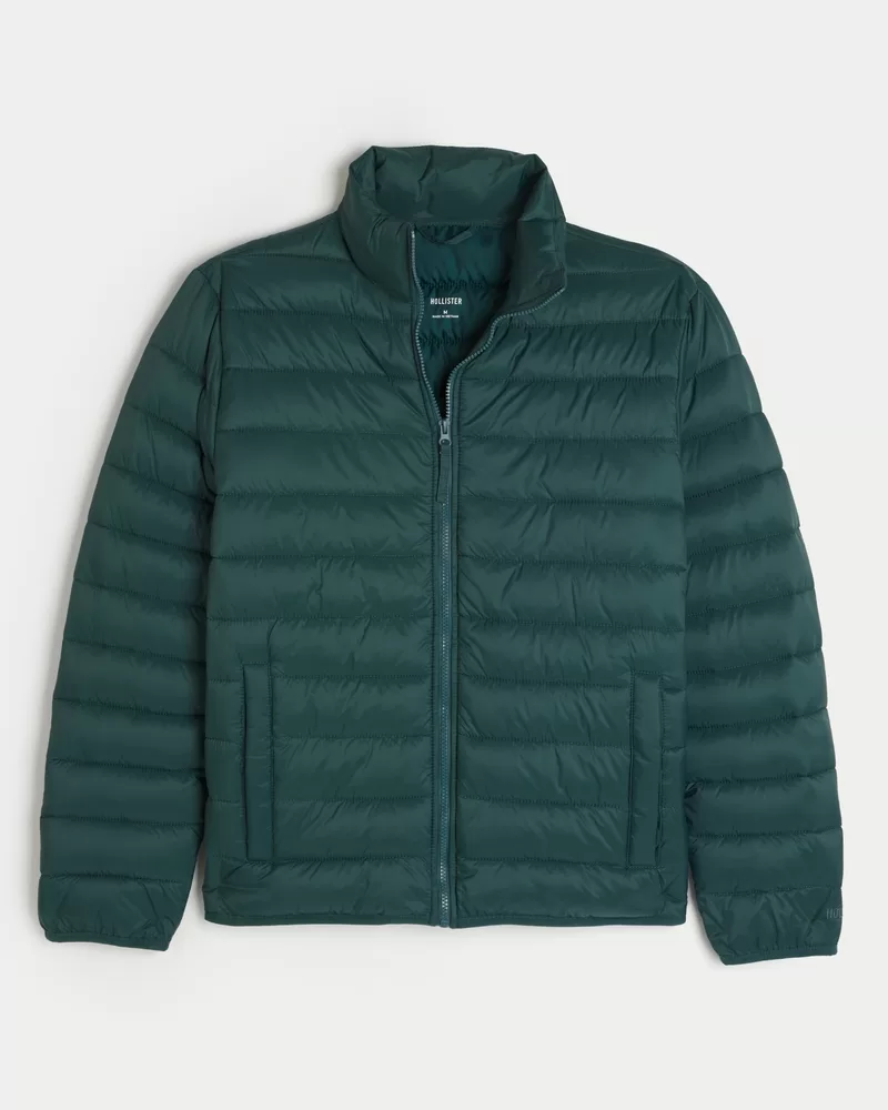 A midweight puffer jacket designed with narrow quilted channels. Full zip-up closure, front pockets, mock-neck collar.