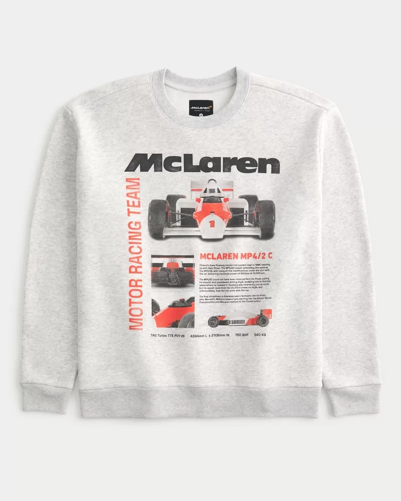 This super soft fleece sweatshirt features official licensed McLaren print graphics. Crew neckline, long sleeves. Relaxed Fit. Imported.