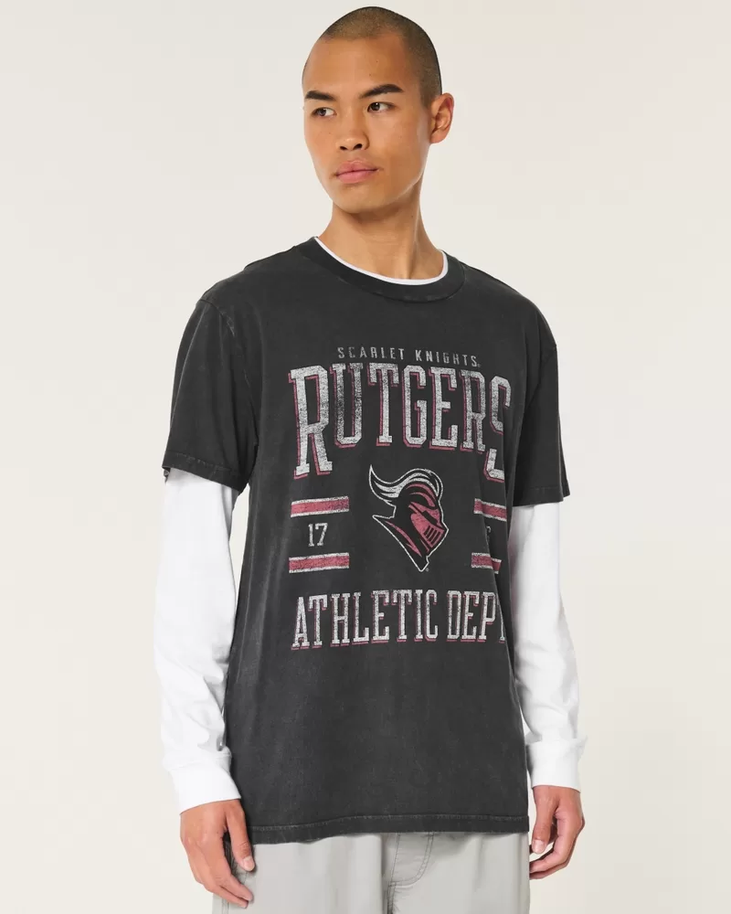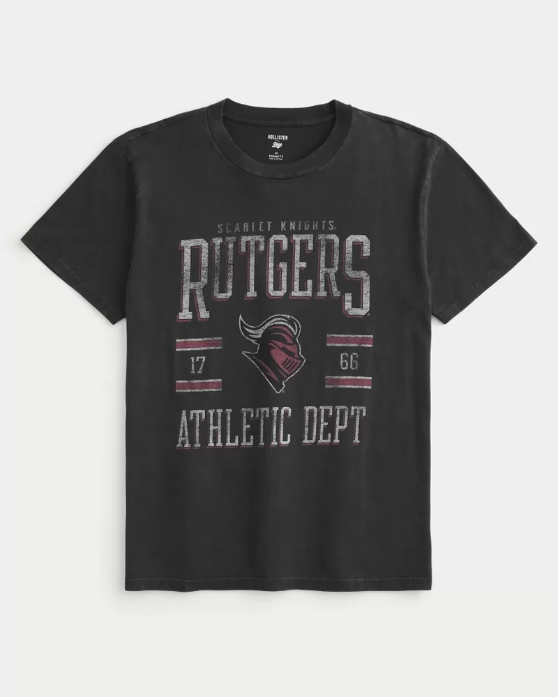 Made with super soft 100% cotton, this tee features official licensed Rutgers University Scarlet Knights print graphics, a crew neckline and short sleeves. Relaxed Fit.