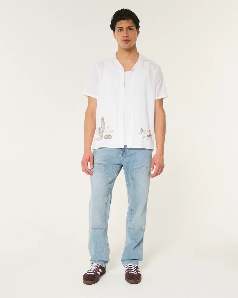Relaxed Short-Sleeve Embroidered Western Graphic Shirt