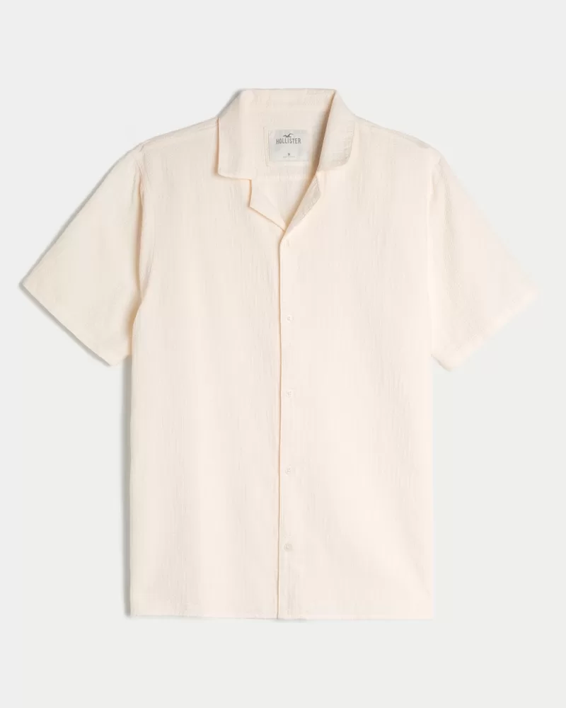 A soft, comfortable shirt in 100% cotton with all-over texture. Short sleeves, full button closure, collar. Relaxed Fit. Imported.