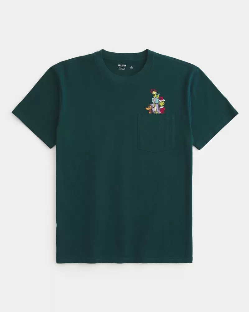 A super soft 100% cotton tee featuring official licensed The Grinch graphic embroidery at the left chest pocket. Crew neckline, short sleeves. Relaxed Fit.