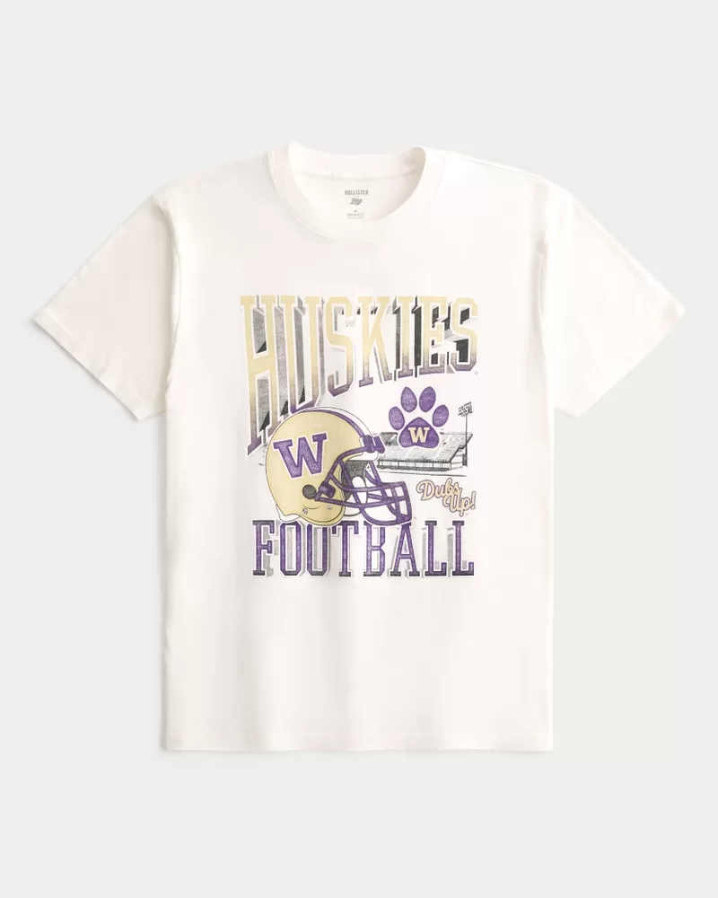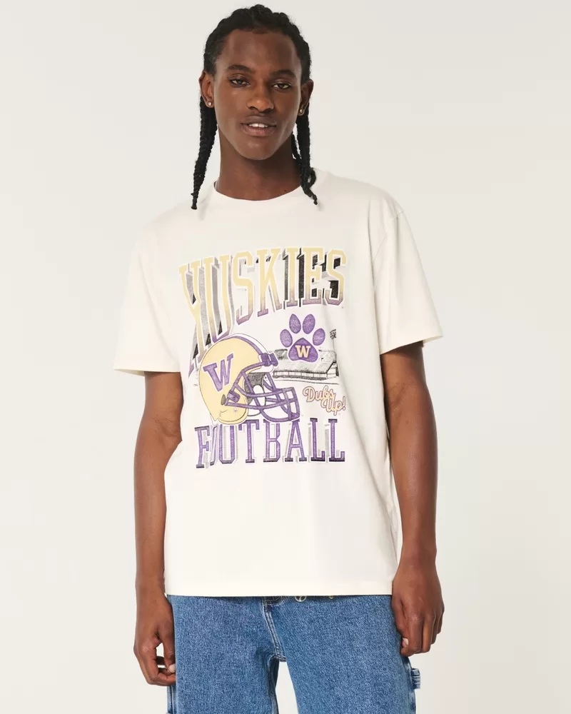 Made with super soft 100% cotton, this tee features official licensed University of Washington Huskies print graphics, a crew neckline and short sleeves. Relaxed Fit.