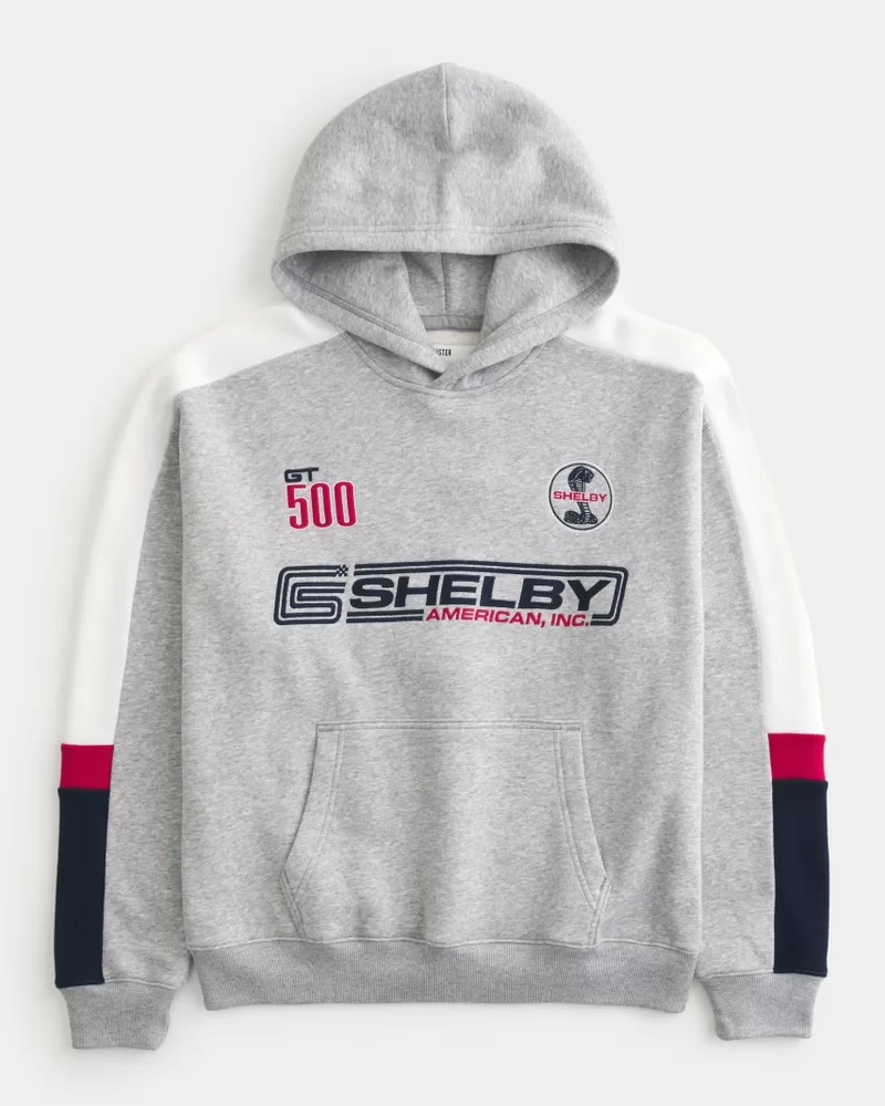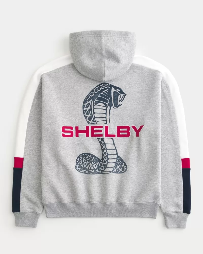 A super soft fleece hoodie featuring official licensed Shelby graphic embroidery at the front, plus applique and print graphics at the back. Front pouch pocket, hood, long sleeves. Imported.