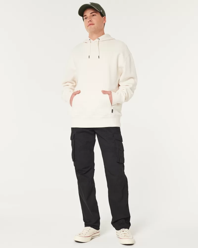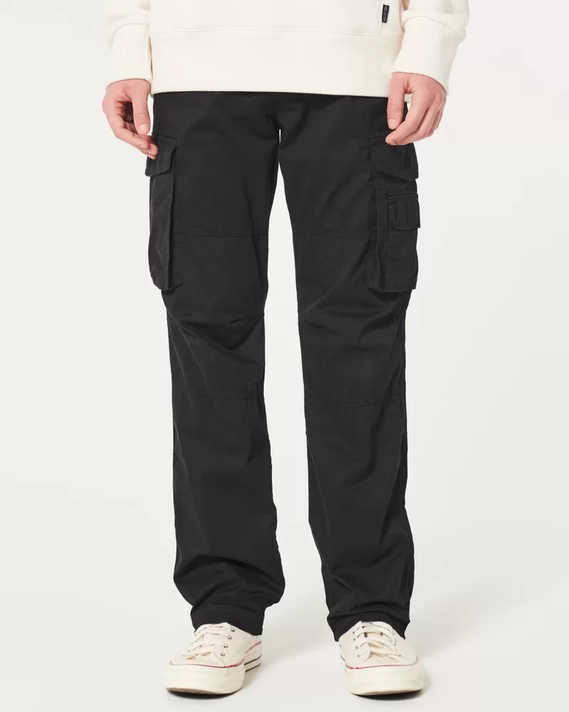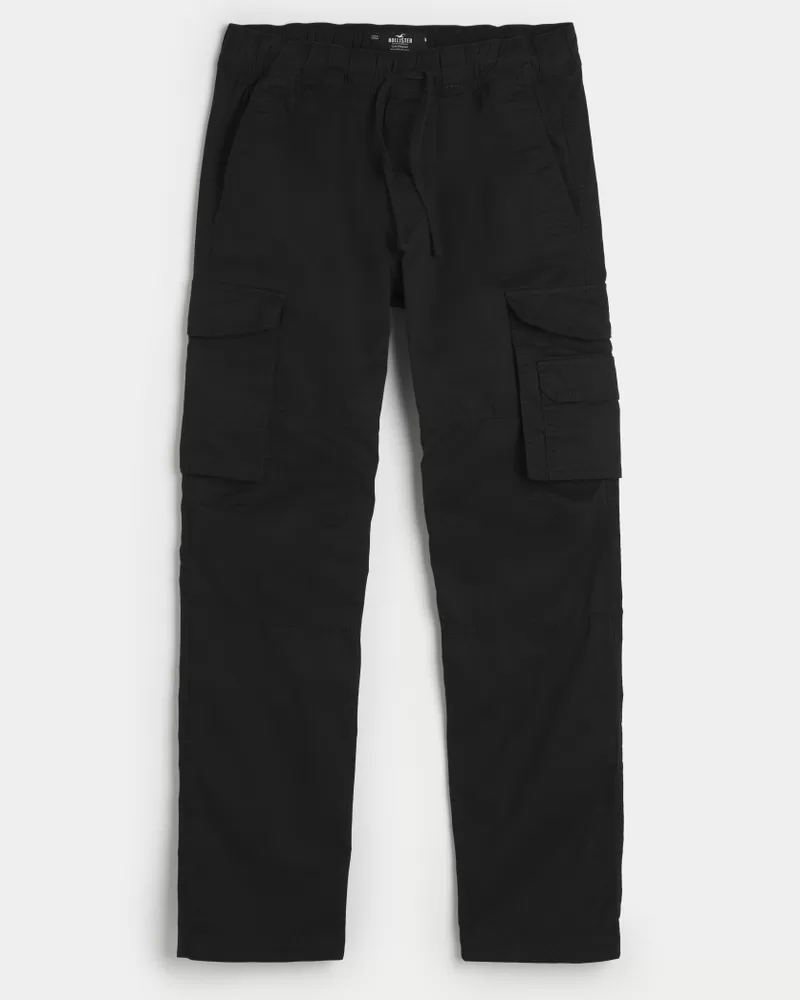 Comfortable pull-on-style pants designed with a drawstring waist and slim straight leg. Front pockets, side cargo pockets.