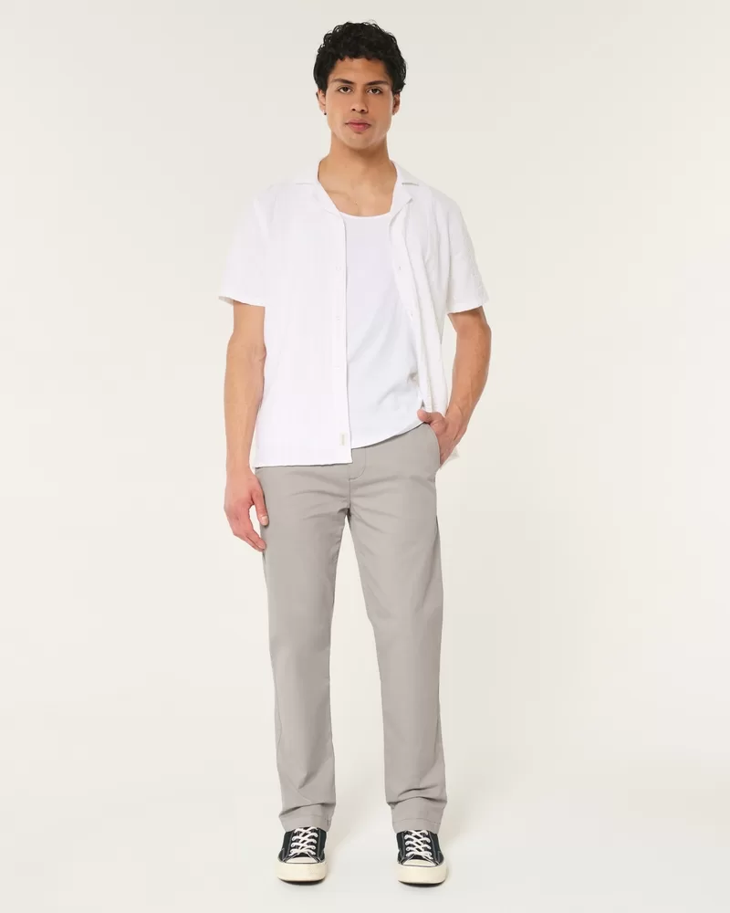 Ultra-comfortable twill chino pants with stretch, designed with a slim straight leg. Pockets, right zipper pocket.