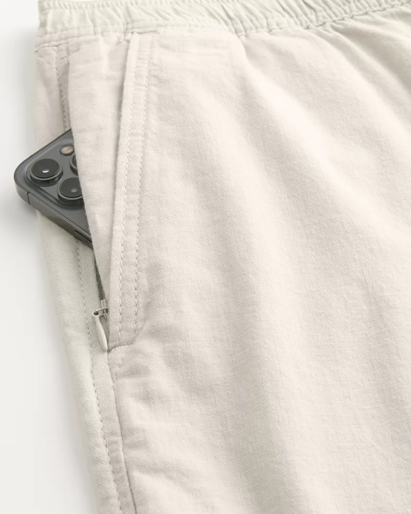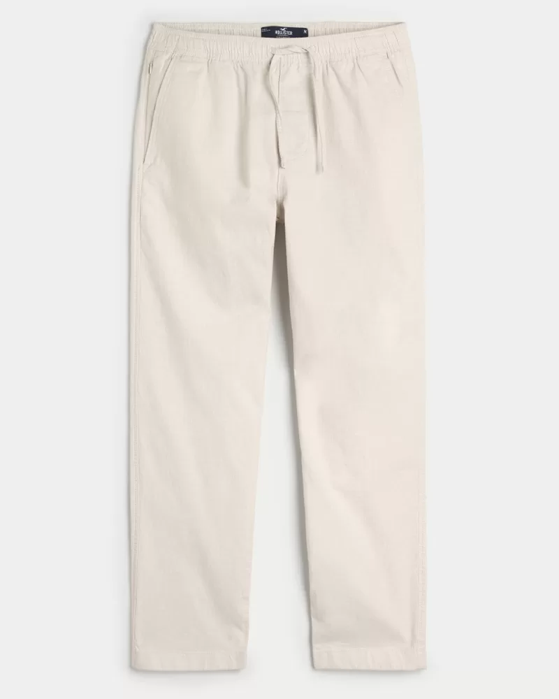 Ultra-comfortable pants in a soft linen blend with Hollister Epic Flex, designed with a slim straight leg and drawstring waist. Pockets, right zipper pocket.