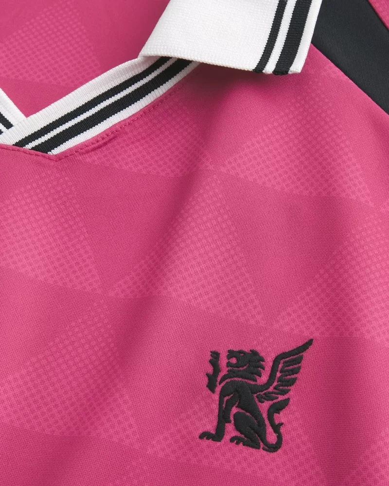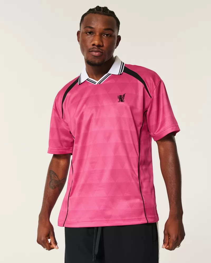 A super soft and ultra-comfortable soccer jersey featuring an embroidered left chest detail. Collar, short sleeves, diamond pattern.