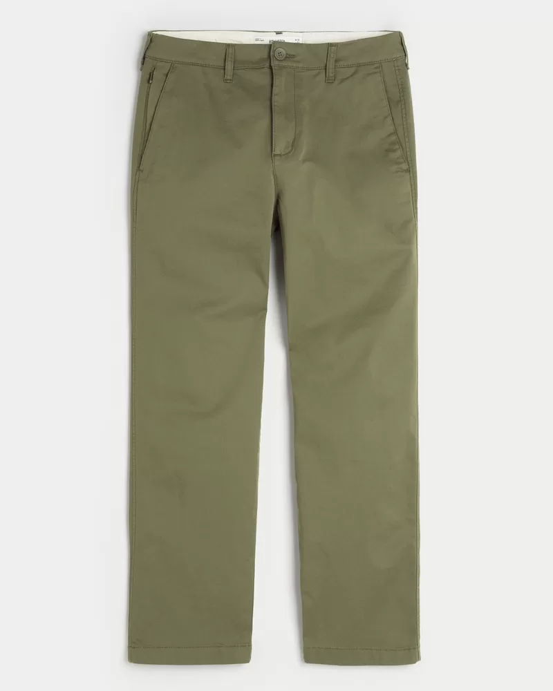 Ultra-comfortable twill chino pants with stretch, designed with a straight leg from top to bottom. Pockets, right zipper pocket.