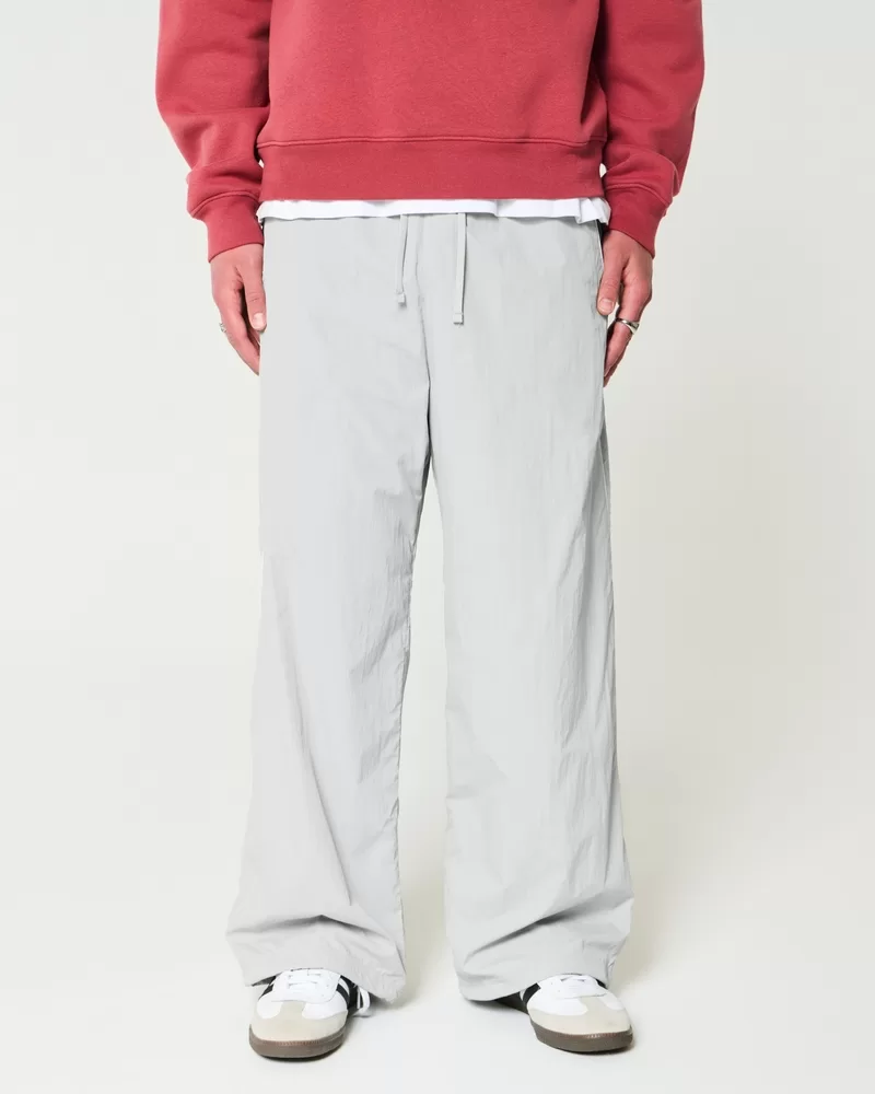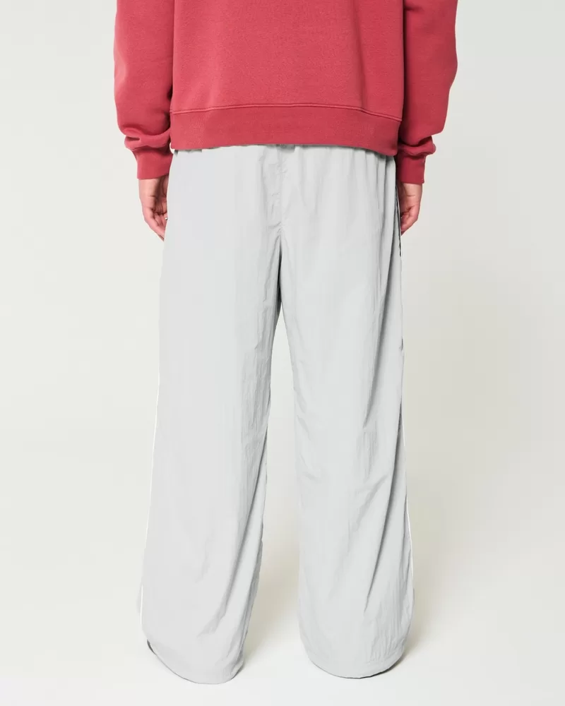 Comfortable track pants with a drawstring waist and side piping. Pockets, super baggy leg.