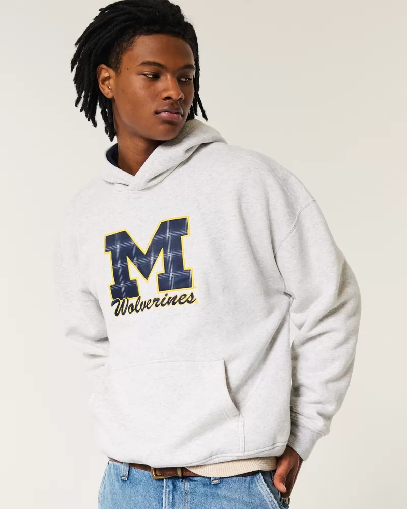 A super soft fleece hoodie featuring official licensed University of Michigan Wolverines graphic applique. Hood with contrast lining, front pouch pocket, long sleeves.