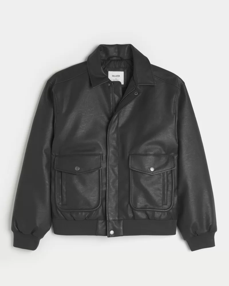 A classic jacket in faux leather, designed with a bomber silhouette. Full zip-up closure, quilted lining, front pockets, banded hems.