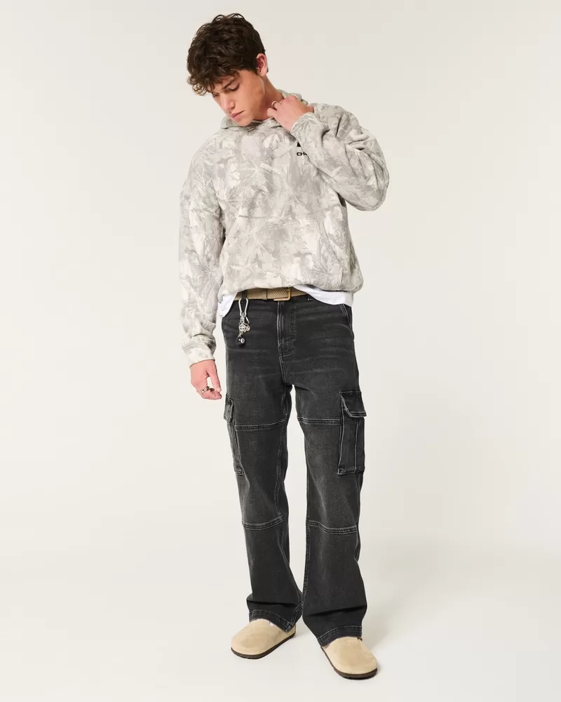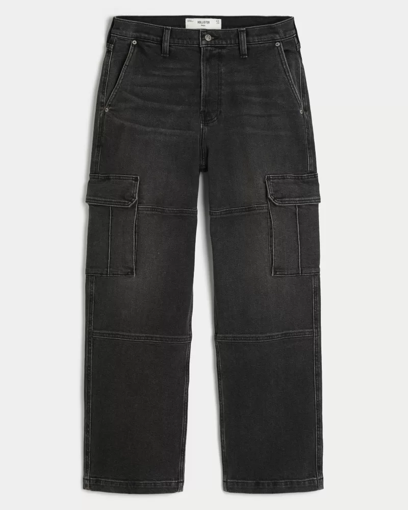 Washed Black Baggy Cargo Jeans,Washed Black Baggy Cargo Jeans