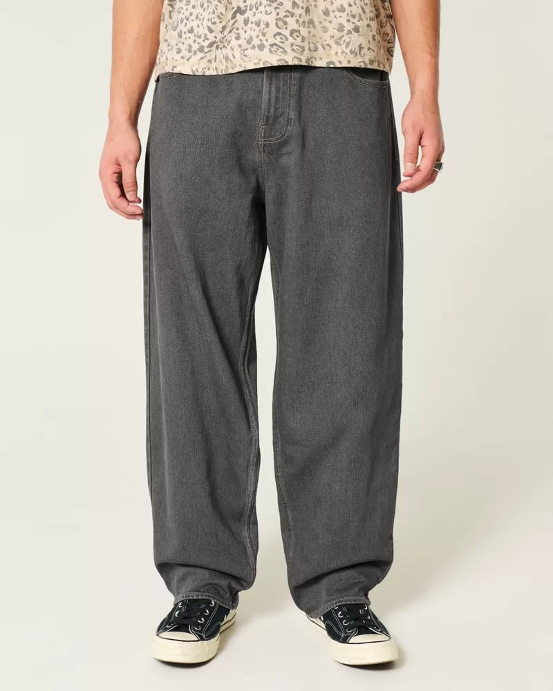 Comfortable denim skater jeans designed with a baggy leg. Washed black, embroidered graphic at right coin pocket. Imported.