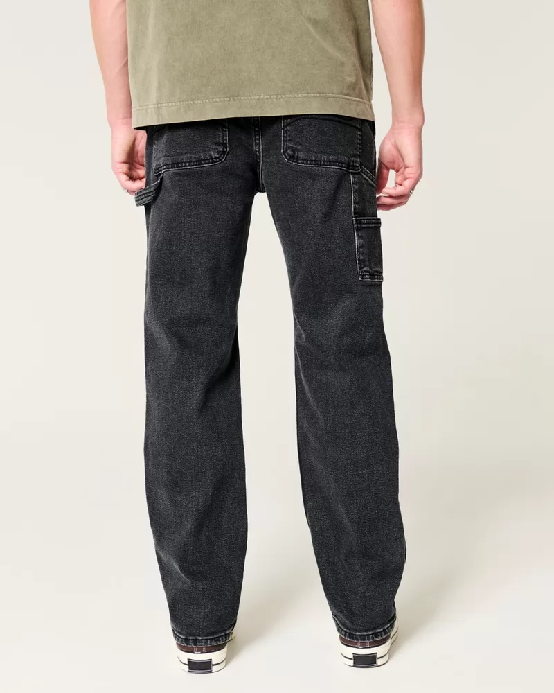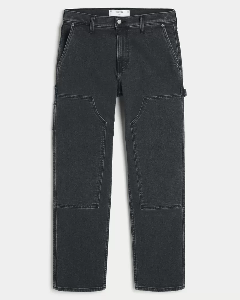 Classic carpenter-style denim jeans in washed black, designed with a loose leg and reinforced knee stitching. Left hammer loop, extra pockets.