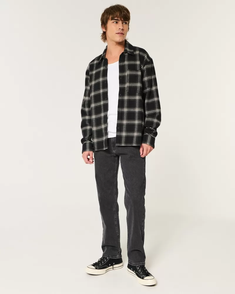 Ultra-comfortable jeans in Vintage Stretch denim in washed black, designed with a loose leg.