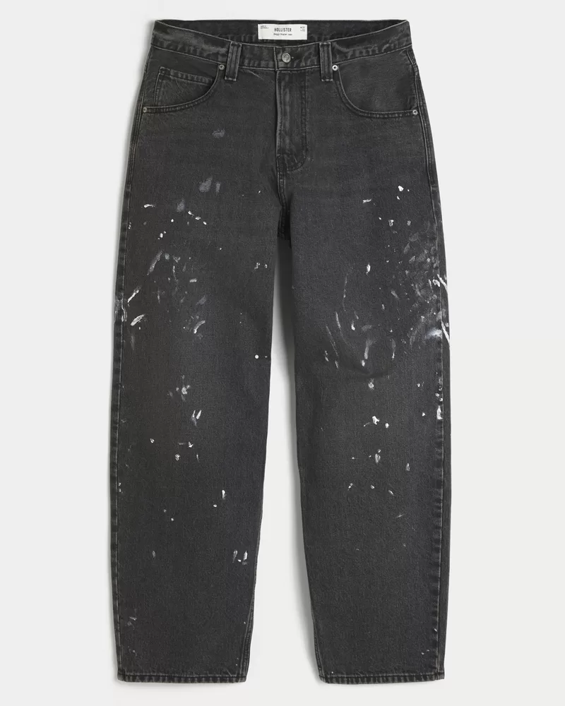 Washed Black Paint Splatter Baggy Skater Jeans