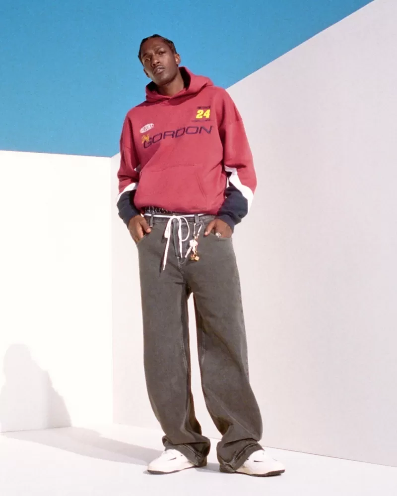 Ultra-comfortable jeans in washed black, designed with a super baggy leg. Iconic 5-pocket styling.
