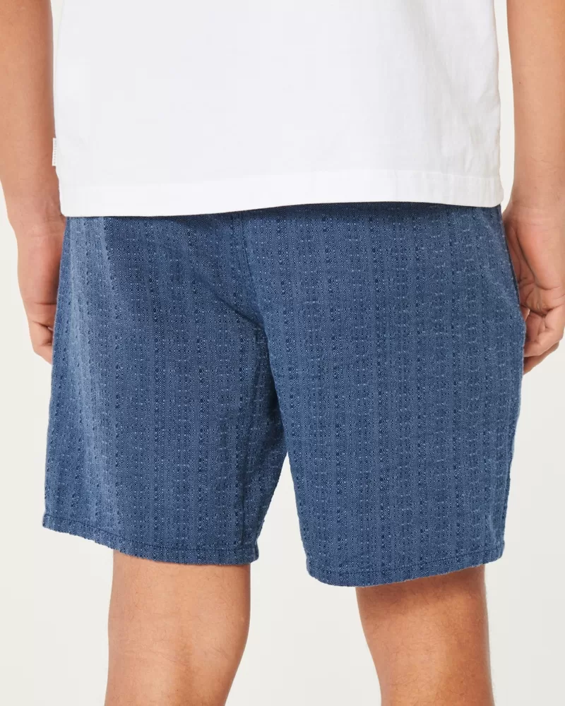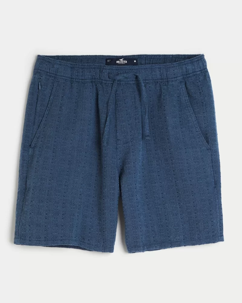 Ultra-comfortable shorts in a soft textured cotton dobby weave. Pull-on drawstring waist, pockets, right zipper pocket, 7″ inseam. Imported.