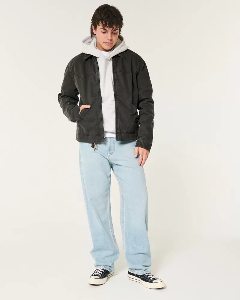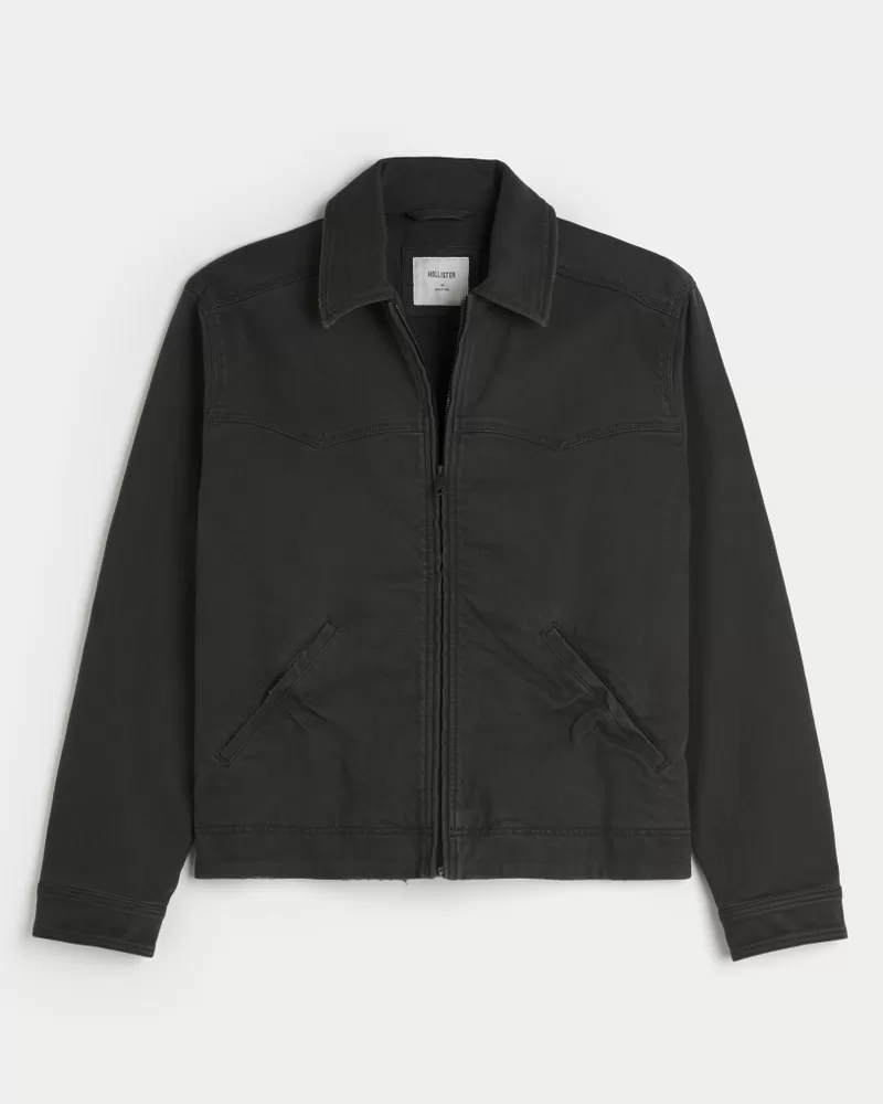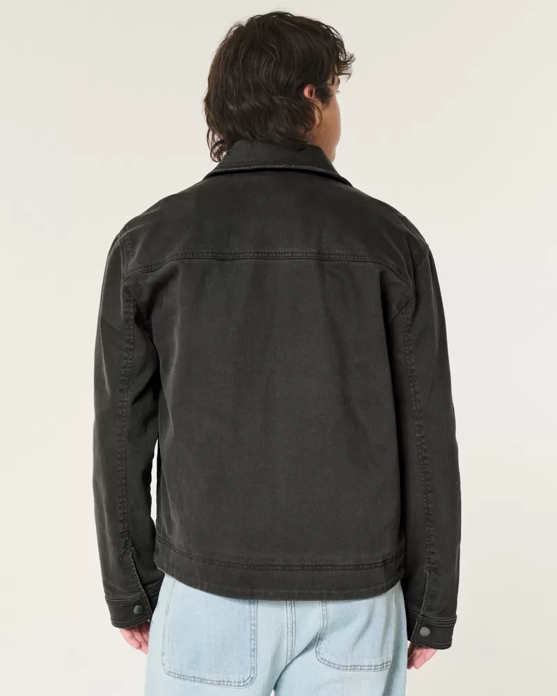 Made with vintage workwear vibes, this comfortable jacket features a twill exterior and full zip-up closure. Front pockets, collar.