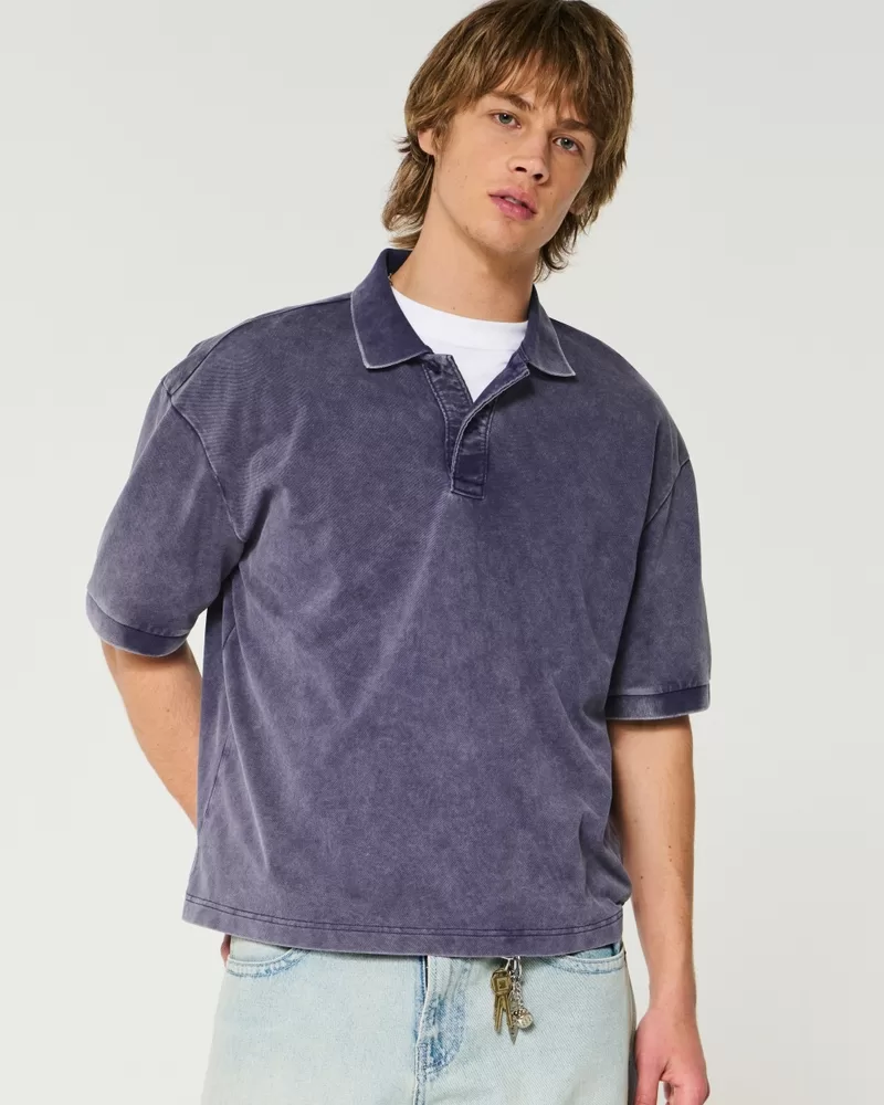This classic, comfortable polo is made with soft pique fabric. Collar, button placket, collar, washed look. Boxy Crop Fit.