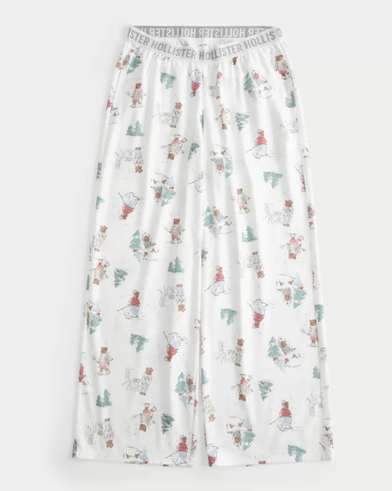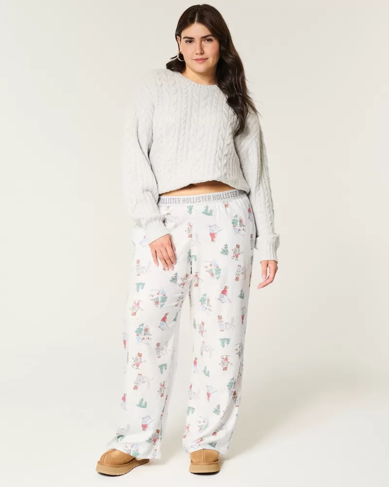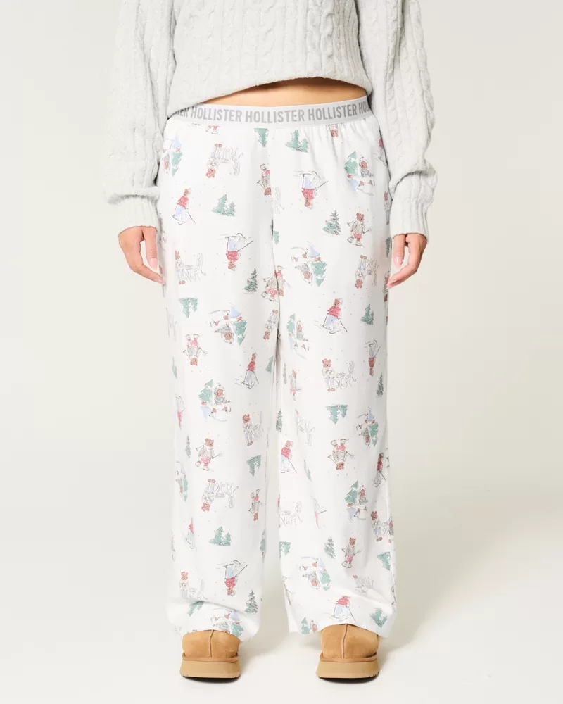 Your new fave pajama pants are made with super soft flannel fabric and feature a banded waist with logo details. Baggy leg, pockets, cute all-over winter bear graphic pattern.
