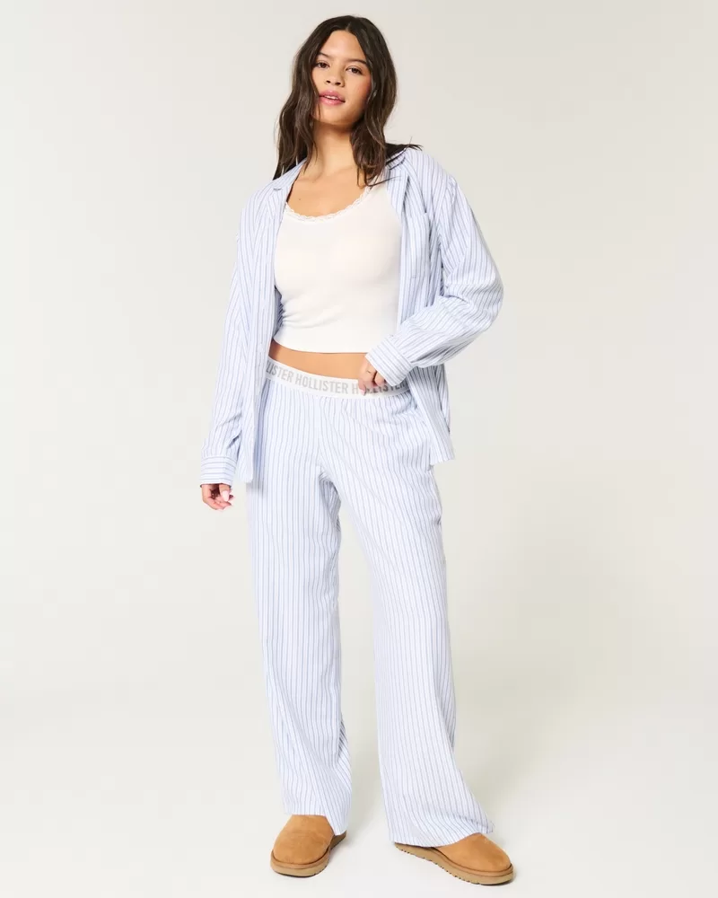 Your new fave pajama pants are made with super soft flannel fabric and feature a banded waist with logo details. Baggy leg, pockets. Imported.
