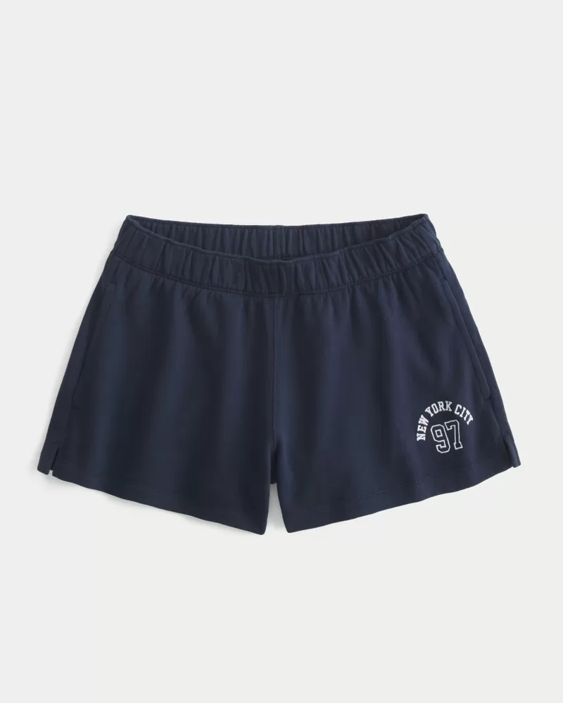 Super soft fleece shorts designed with a banded adjustable-rise waist. Pockets.