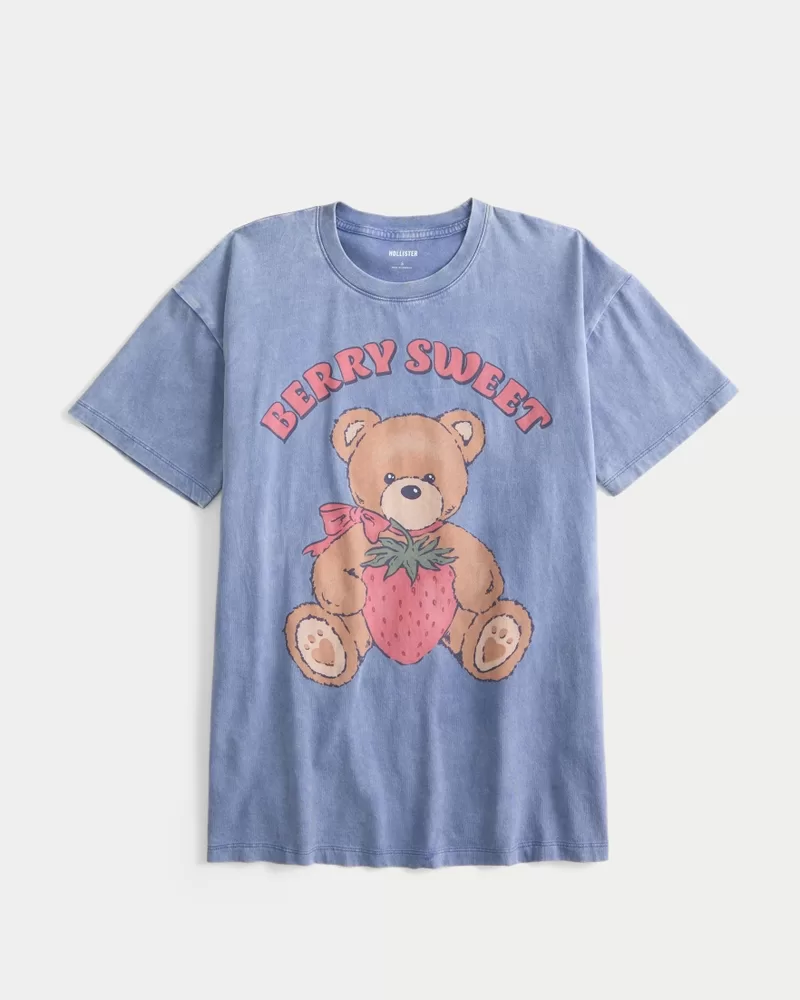 A super soft 100% cotton tee featuring Berry Sweet teddy bear print graphics. Crew neckline, short sleeves.