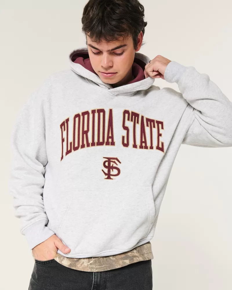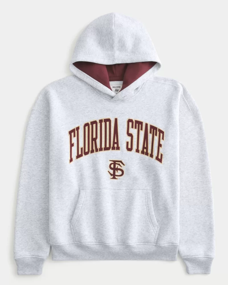 A super soft fleece hoodie featuring official licensed Florida State University graphic applique. Hood with contrast lining, front pouch pocket, long sleeves.