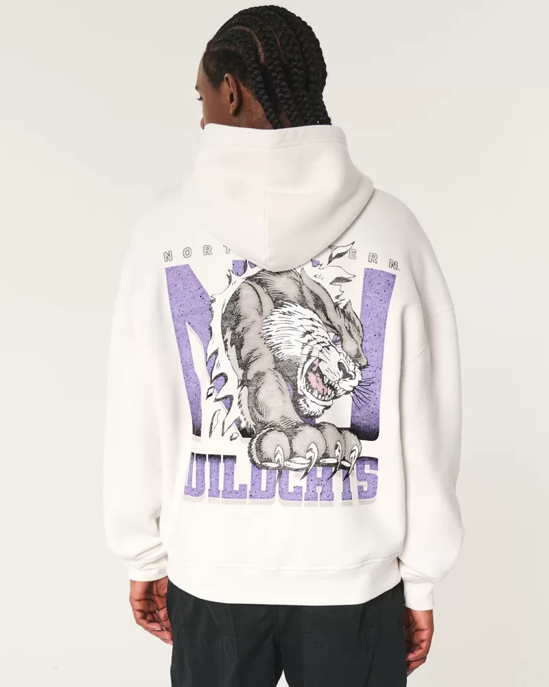 Boxy Northwestern University Wildcats Graphic Hoodie